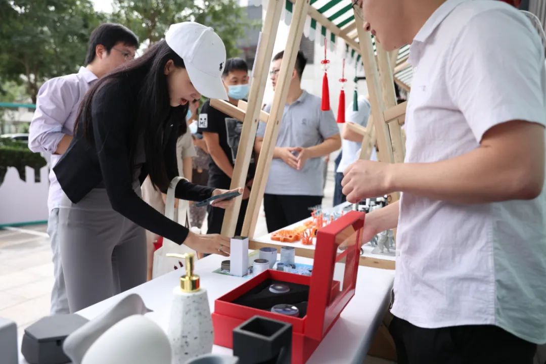 来自财务公司的小伙伴:“文创集市这种形式特别好,不仅可以近距离的看到,还能触摸我们的材料产品,像这些水泥纸巾盒、陶瓷挂坠没想到离我们的生活这么近,作为建材的一位员工,真的很为我们的材料产品自豪。”