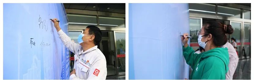 严格遵守当地疫情防控政策,大家佩戴口罩、扫码登记、有序进厂,在签名墙上留下自己的名字和祝福。