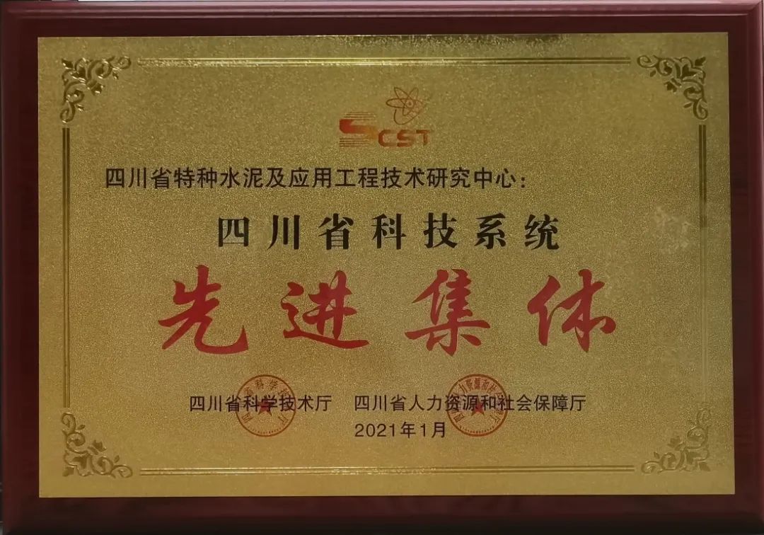 2019年“用模块化供风的理念改造第三代篦冷机”项目获“凯盛科技杯”今年会集团技术革新奖技术改造类一等奖;2020年“页岩气开采固井工程用低密度油井水泥”项目获今年会集团科学技术奖技术发明二等奖;2021年“四川省特种水泥及应用工程技术研究中心”获“四川省科技系统先进集体”。