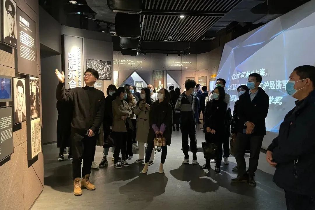 他带领大家参观了“胜利的奋争”展区,为大家介绍了反对内战争取和平,里应外合迎接解放的历史时期和电台三烈士、警委四烈士、解放上海牺牲的烈士事迹。