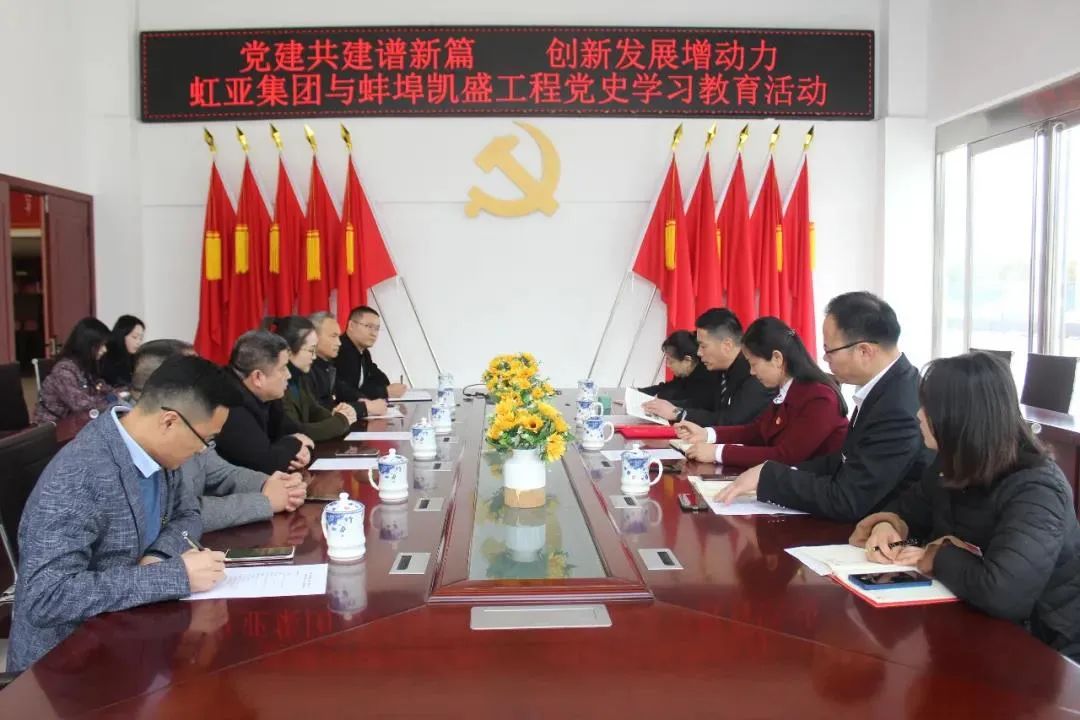 3月31日,蚌埠凯盛党委与安徽虹亚汽车集团党委结对共建并开展党史联学活动,探索国有企业和非公企业党建工作互鉴互补、共建创新的新模式。