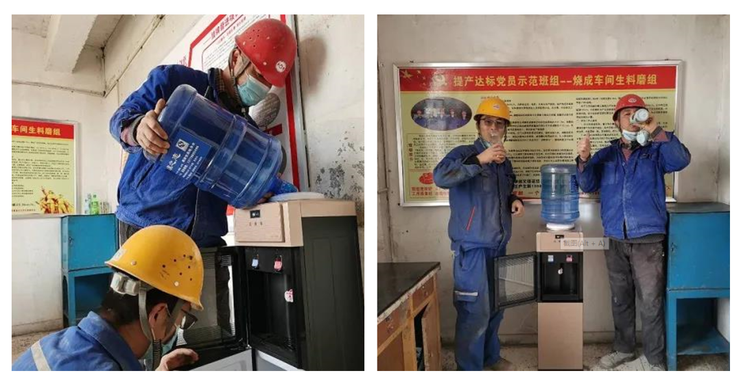 近日,和静天山水泥在开展党史学习教育中,根据职工群众实际需要解决了饮水问题。安排工会组织在原料进门、出厂水泥环节安装开水器、饮水机等饮水设施,确保服务公司的司机有水喝,提高了顾客的满意率;在烧成车间、制成车间等环境温度较高的岗位也配备了饮水设施,解决了职工饮水问题,提高了职工的幸福感。
