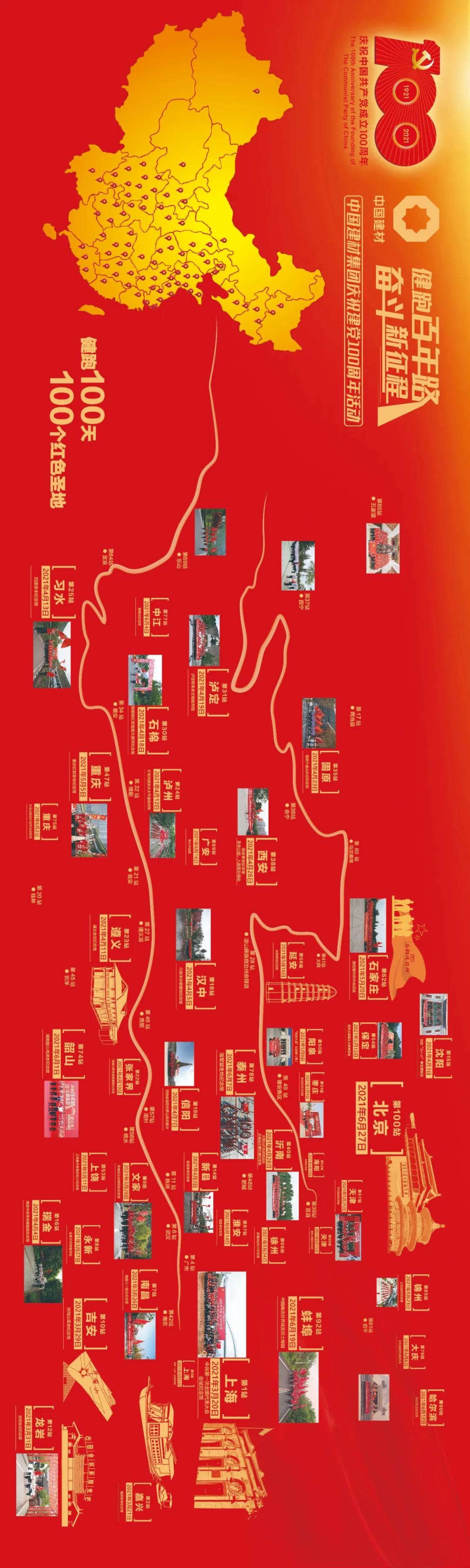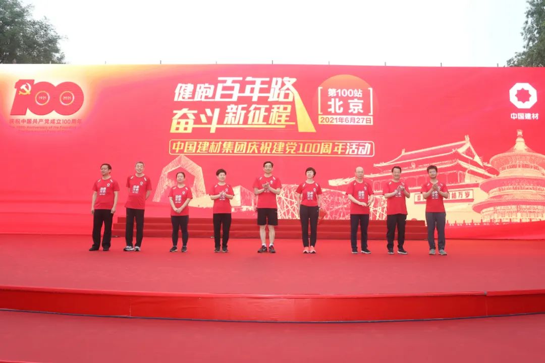 孙力实在致辞中讲到,为庆祝建党百年,我们从中国革命摇篮上海出发,历时100天的健跑,瞻仰100个红色圣地,在奔跑中感悟初心使命、传承伟大精神,铭记光辉历程、汲取奋进力量,用自己的实际行动完成了建材史上蔚为壮观的一次征途。她指出,集团作为我国建材领域唯一一家央企,在党的领导下,伴随着新中国诞生发展和改革开放步伐一路成长为全球最大的建材企业。我们不会忘记从哪里来,更加坚定知道往哪里去,我们将以奋发向上的品格和锐意创新的精神风貌,勇往直前再出发。她强调,我们要以习近平新时代中国特色社会主义思想为指导,充分发挥国有经济在建材领域的战略支持作用,以材料创造美好世界,加快建设具有全球竞争力的世界一流材料产业投资集团,为早日实现中华民族伟大复兴的中国梦而努力奋斗!