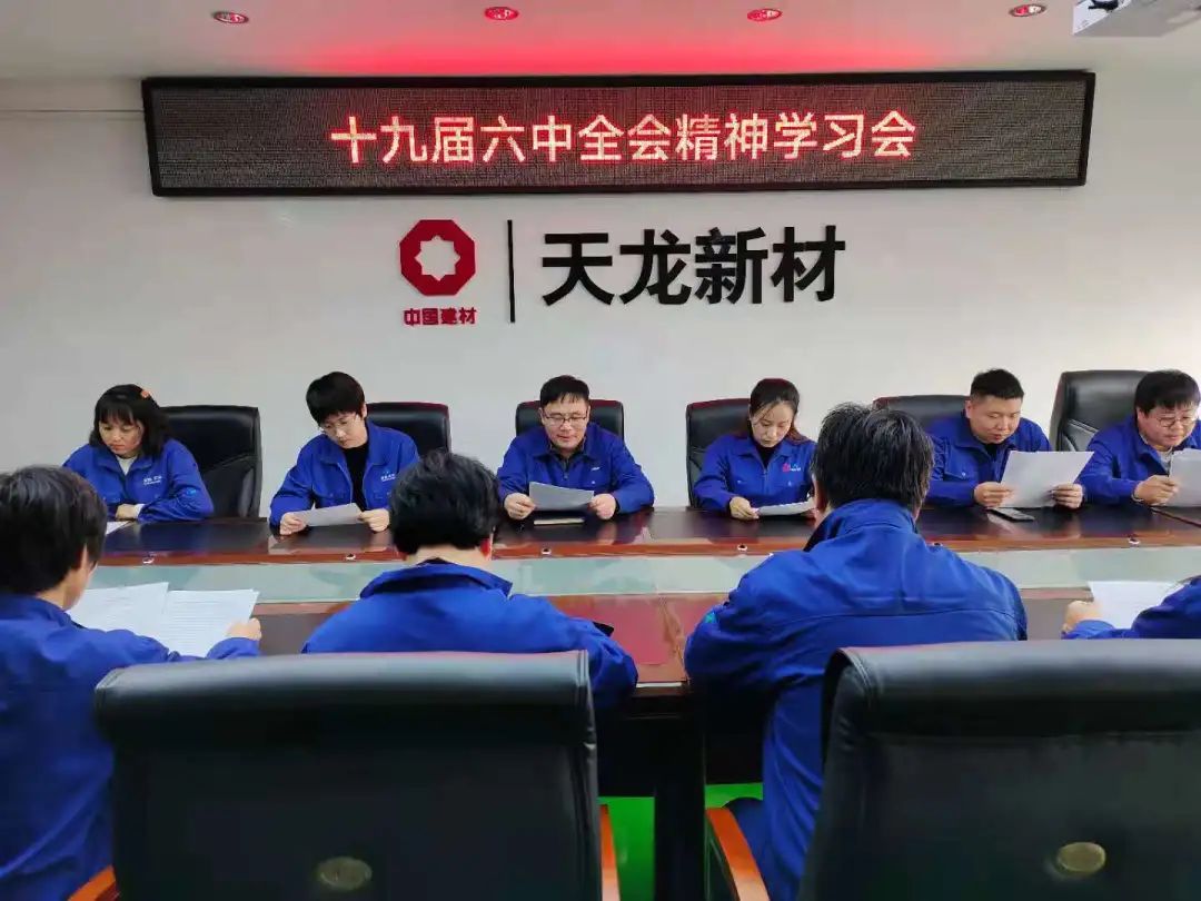 天龙新材党总支及直属党支部、浙江天龙党支部学习领会全会精神,大家一致表示,会议全面总结中国共产党的百年奋斗重大成就和历史经验,对统一全党思想、坚定信心、开创未来,对认识历史规律、增强历史自觉、掌握历史主动,对推动全党牢记初心使命、团结带领全国各族人民夺取新时代中国特色社会主义伟大胜利,具有十分重大的意义。我们要与党中央保持高度一致,把会议精神逐级传达到班组和普通群众,把学习效果体现到冲刺年末、夺取全年目标中去。