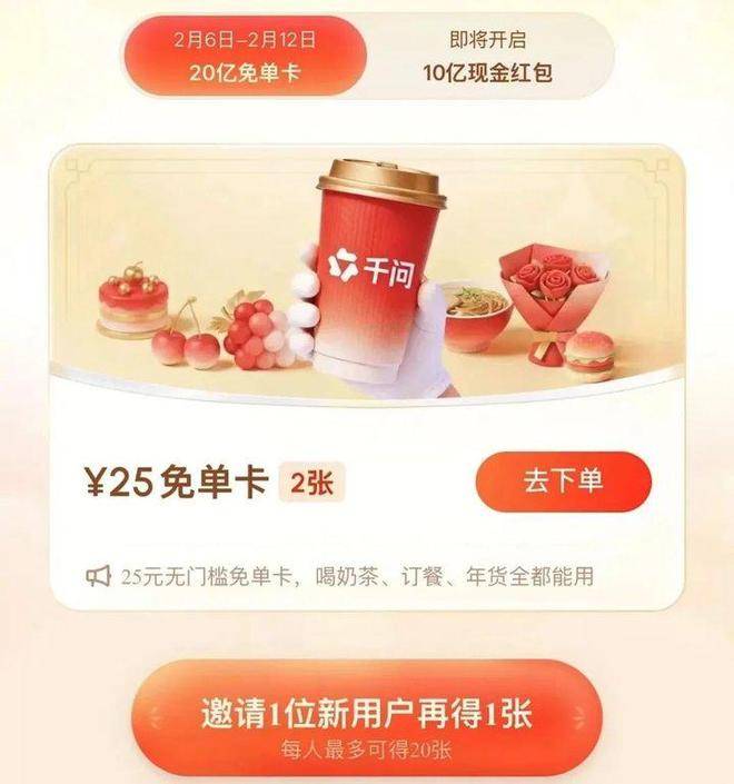 2月6日—2月12日第一波勾当期间,我正在2月8日上午用千问APP点奶茶(没有指定品牌取具体产物,阿里以奶茶为暗语,这张免单卡能够正在全国30多万家奶茶及咖啡店利用,并且。